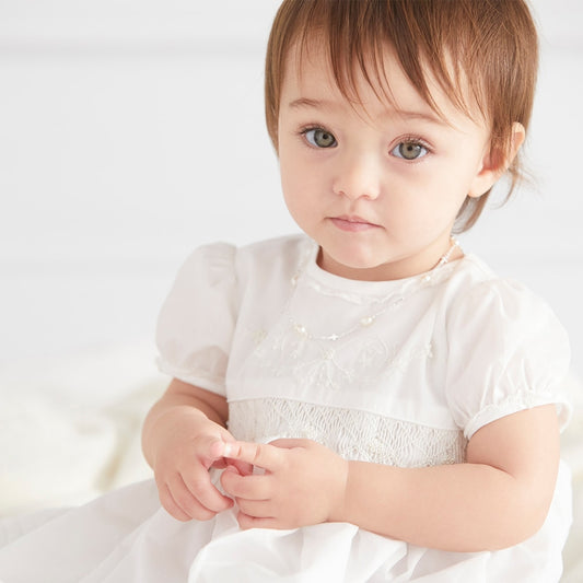 Sometimes the littlest hands hold the biggest place in your heart. Discover the definitive collection of baby jewellery from Molly Brown London to welcome new arrivals into the world. Created with love, each elegant keepsake piece of jewellery for babies can be worn as she takes her first steps, such as our beautiful baby's first bracelet. The range includes first diamonds, little girl's pearls and the most magical of fairies. Find unique baby necklace styles and beautiful baby bangles with a complimentary engraving option to give her a forever cherished gifts.