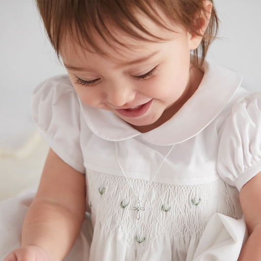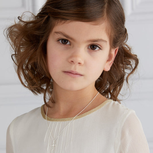 As a symbol of her beliefs, cross necklaces are a classic piece of jewelry every girl can cherish forever. Whether its a simple silver or gold cross and chain or a more modern cross necklace design, find the perfect piece to mark her faith. Whether it's for a Christening, Holy Communion or Confirmation, have confidence she won't grow out of our elegant and timeless designs. At Molly Brown London, we believe in marking beautiful moments, so all our cross necklaces arrive with free luxury gift wrap to make your gift extra special and eveything more beautiful.