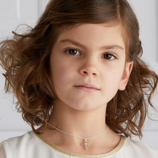 A symbol of faith, cross necklaces are a beautiful way to show her commitment to her beliefs. Whether it's a traditional cross and chain or a modern twist on the cross necklace, our crucifix necklaces are a thoughtful way to celebrate her religion or mark a key moment in her life such as her Christening, Holy Communion or Confirmation. We make our girl's cross necklaces adjustable so she can wear them as she grows and timeless designs means she'll cherish her jewelry forever.