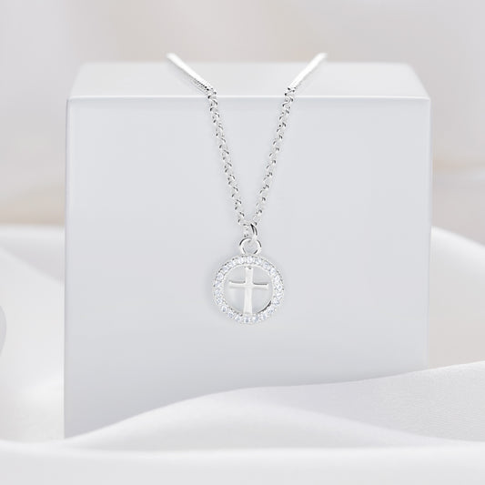 Faith Rounded Cross Diamond Necklace - Sterling Silver