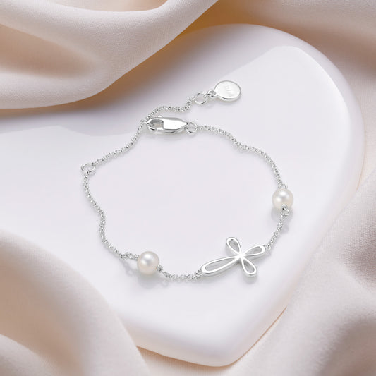 Cherish Cross Pearl Bracelet - Sterling Silver