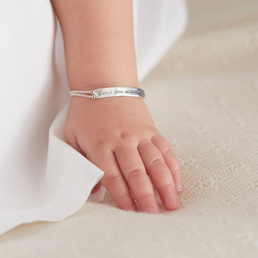 As a celebration of her birth, we design special Baptism jewelry pieces especially for babies. Our Baby Baptism Bangles are the perfect size for little wrists and make the ideal traditional Baptism gift for babies. Our Baptism bracelets with a double chain are adjustable and can be made to fit most ages and sizes so she can wear it as she grows.