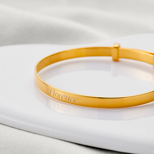 Personalized My First Diamond Baptism Baby Bangle - Gold-Plated
