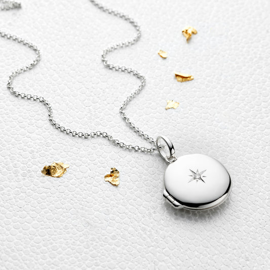 Small Forever Diamond Locket Necklace - Sterling Silver